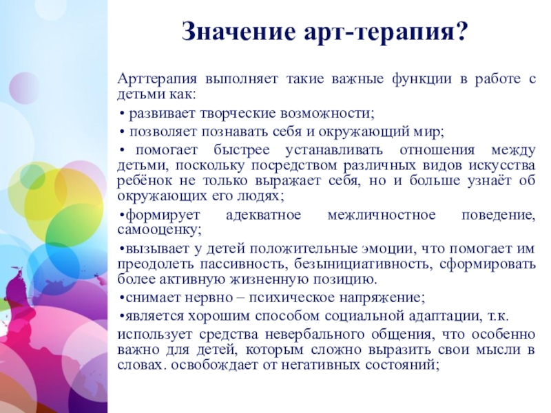 Арттерапия выполняет такие важные функции в работе с детьми как: