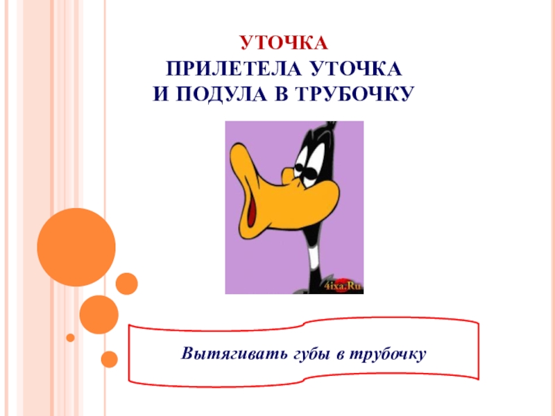 Слайд 5УТОЧКА ПРИЛЕТЕЛА УТОЧКА И ПОДУЛА В ТРУБОЧКУ