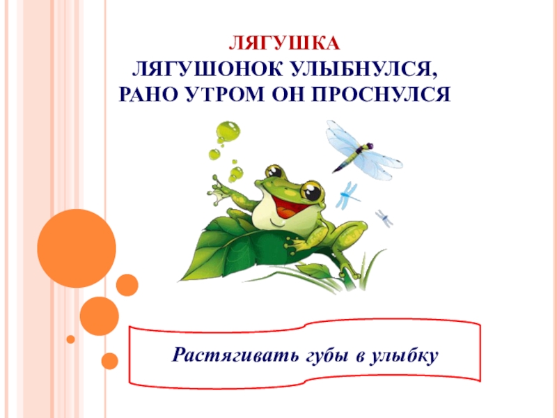 ЛЯГУШКА ЛЯГУШОНОК УЛЫБНУЛСЯ, РАНО УТРОМ ОН ПРОСНУЛСЯ  Растягивать губы в улыбку