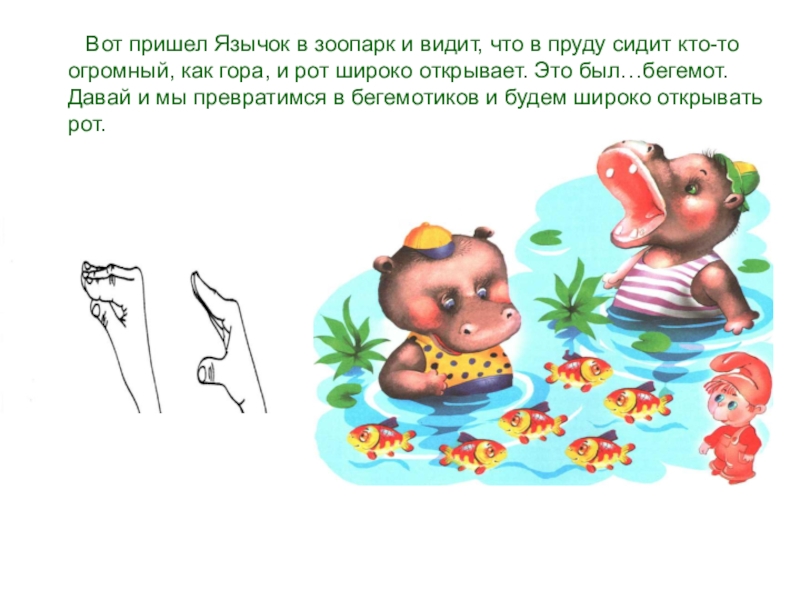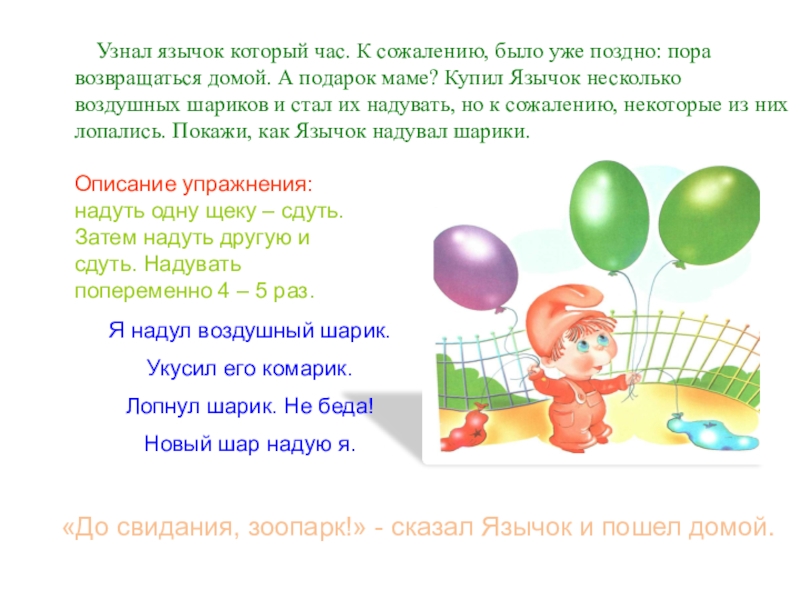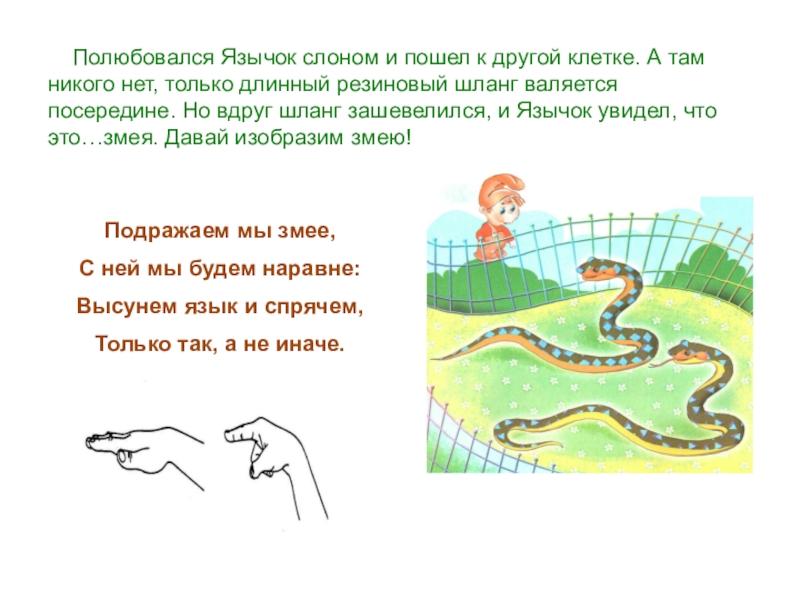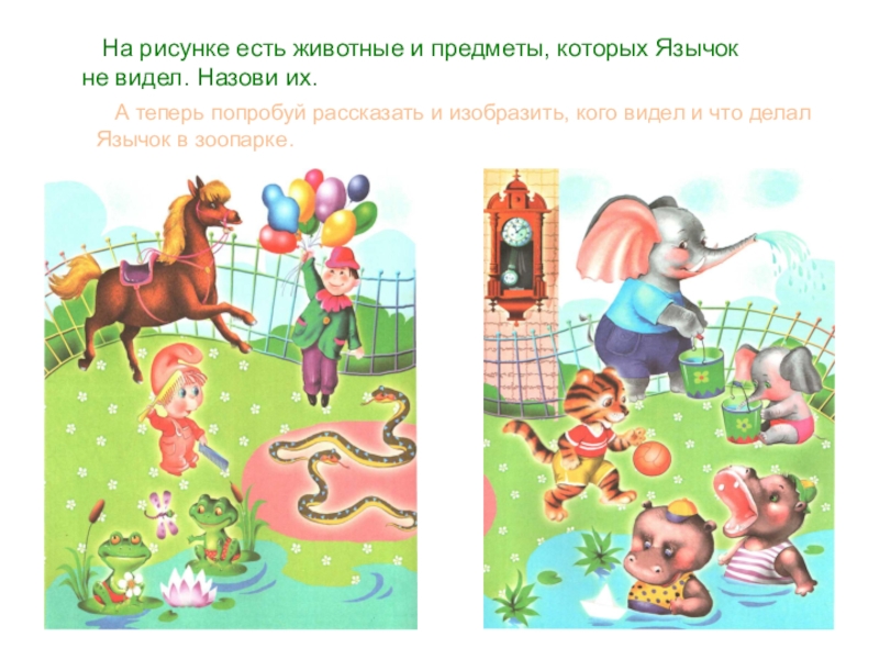 А теперь попробуй рассказать и изобразить, кого видел и что делал Язычок в зоопарке.