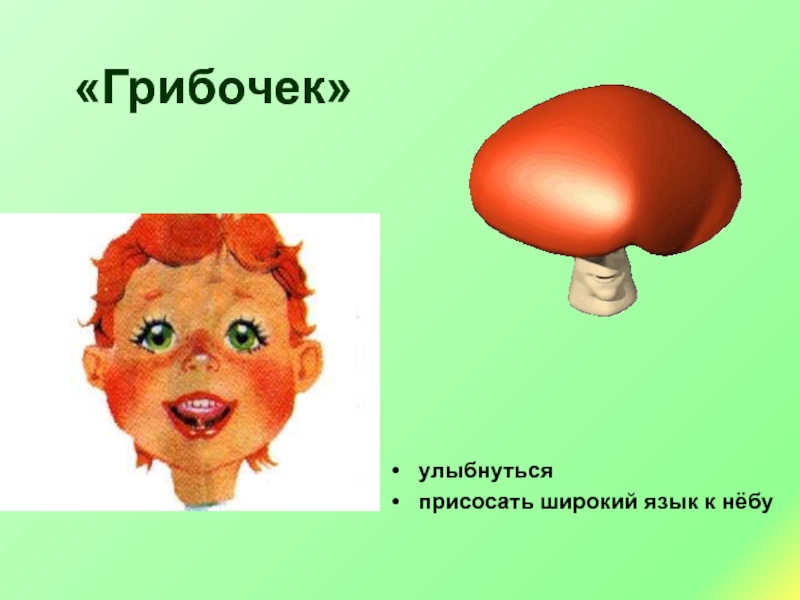 «Грибочек»улыбнутьсяприсосать широкий язык к нёбу