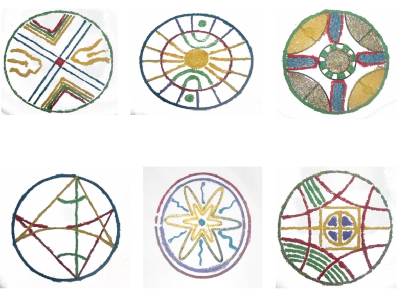 ИХ ВЫШИВАЮТ НА ТКАНИ, РИСУЮТ НА ПЕСКЕ, ВЫПОЛНЯЮТ ЦВЕТНЫМИ ПОРОШКАМИ И ДЕЛАЮТ ИЗ МЕТАЛЛА, КАМНЯ, ДЕРЕВА