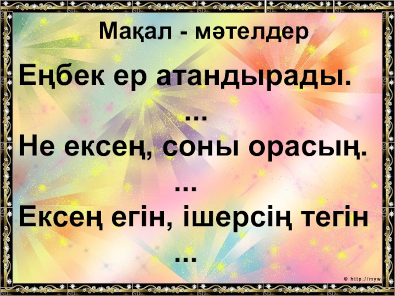 Мақал - мәтелдерЕңбек ер атандырады....Не ексең, соны орасың.
