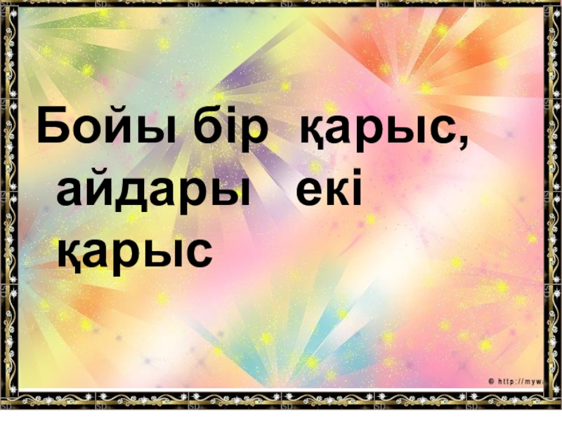 Слайд 37Бойы бір қарыс, айдары екі қарыс