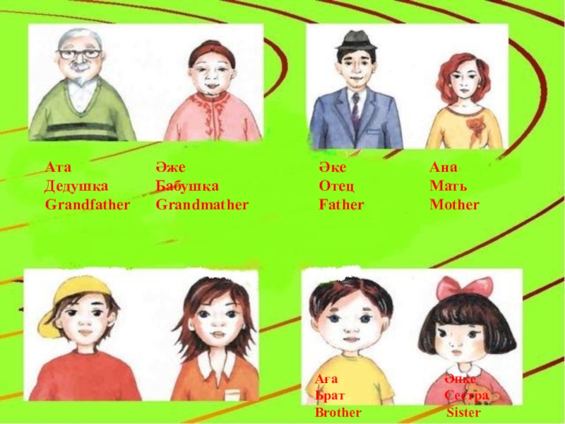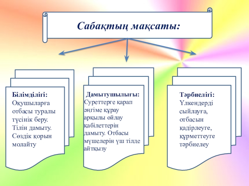 Суреттерге қарап әңгіме құрау арқылы ойлау қабілеттерін дамыту. Отбасы мүшелерін үш тілде айтқызу