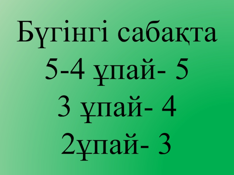 Слайд 18Бүгінгі сабақта 5-4 ұпай- 5 3 ұпай- 4 2ұпай- 3