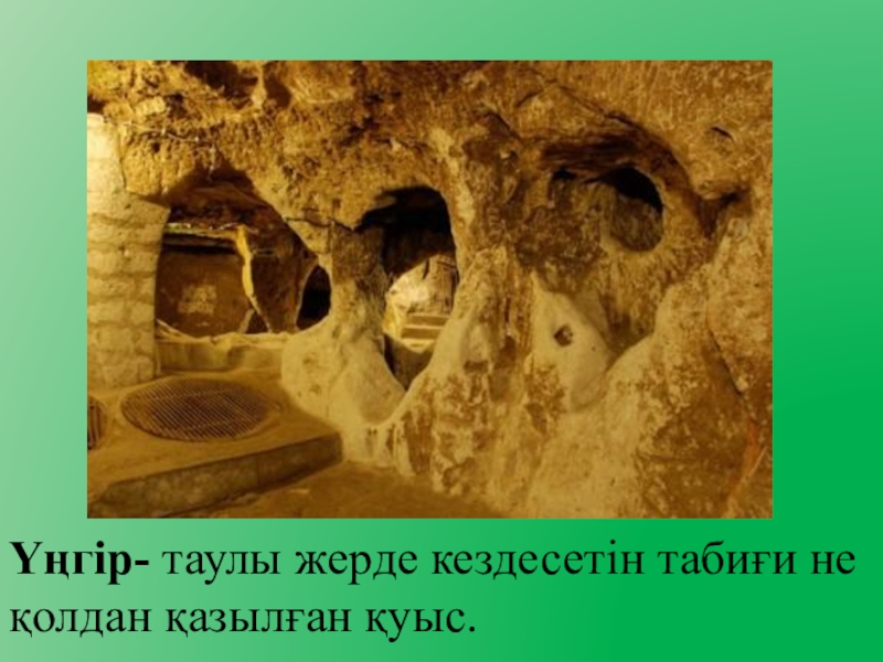 Слайд 9Үңгір- таулы жерде кездесетін табиғи не қолдан қазылған қуыс.