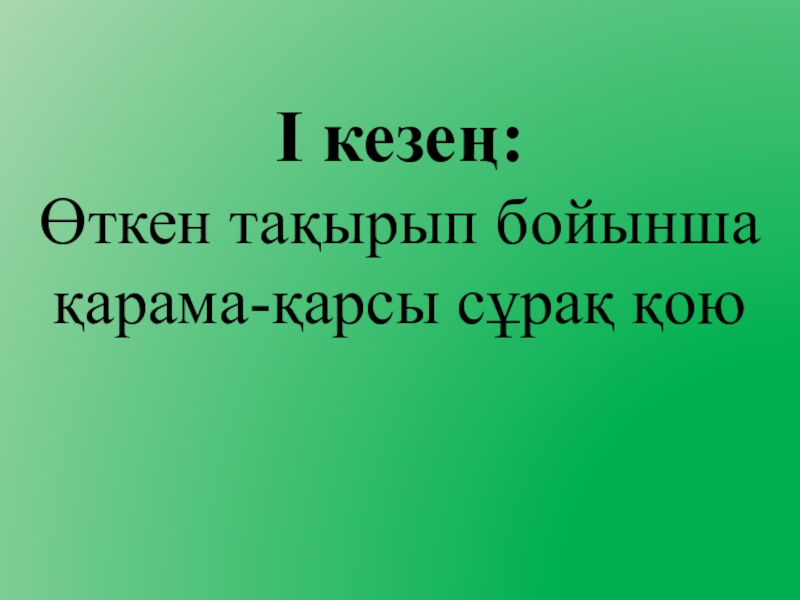 Слайд 2І кезең: Өткен тақырып бойынша қарама-қарсы сұрақ қою