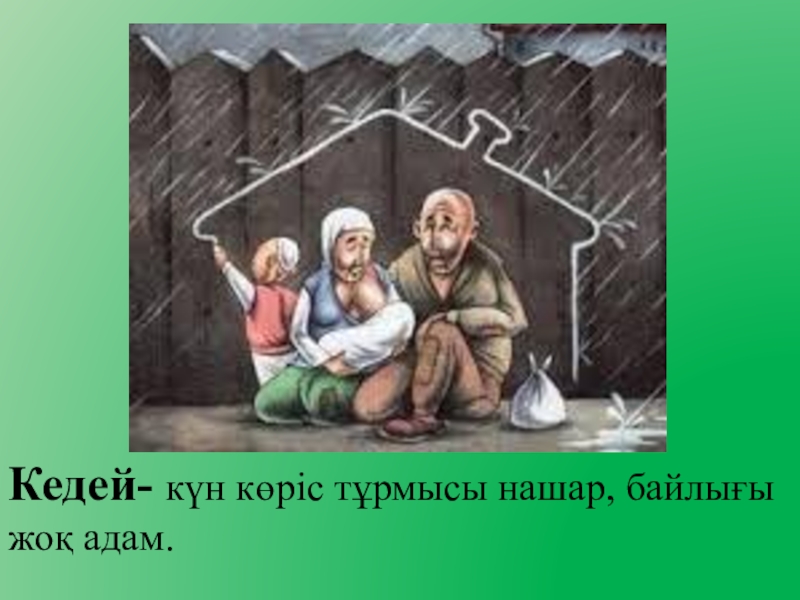 Слайд 6Кедей- күн көріс тұрмысы нашар, байлығы жоқ адам.