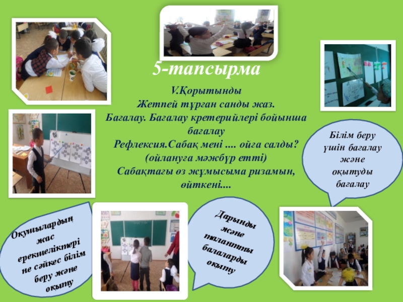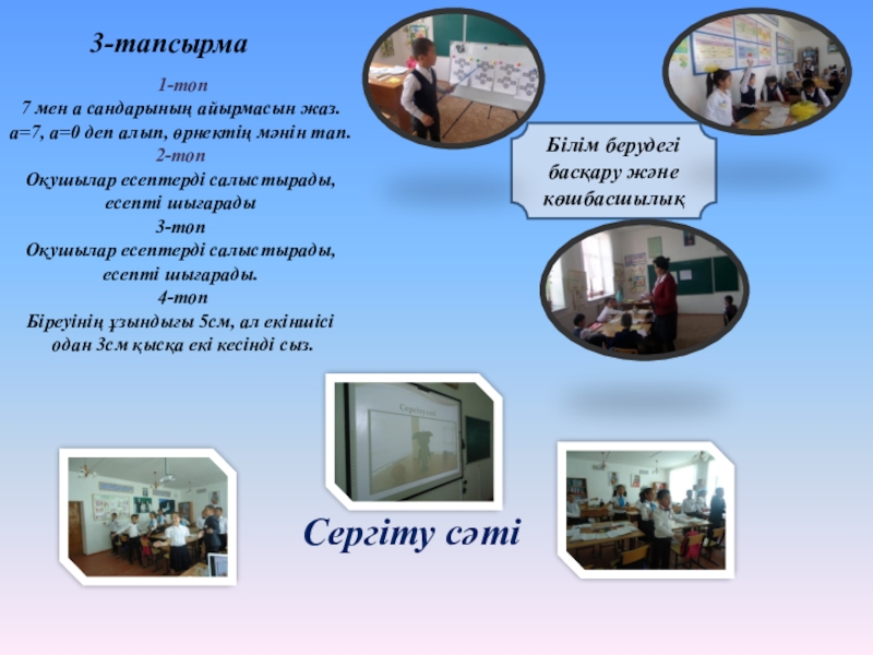 Оқушылар өрнектерді ажырата біледі.Өзара пікір алмасады және есепті дұрыс, жүйелі шеше алуы.