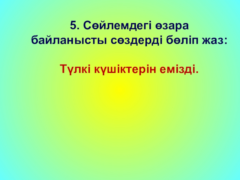 5. Сөйлемдегі өзара байланысты сөздерді бөліп жаз:Түлкі күшіктерін емізді.