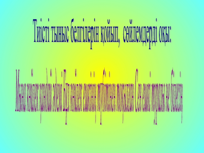 Слайд 18Тиісті тыныс белгілерін қойып, сөйлемдерді оқы: