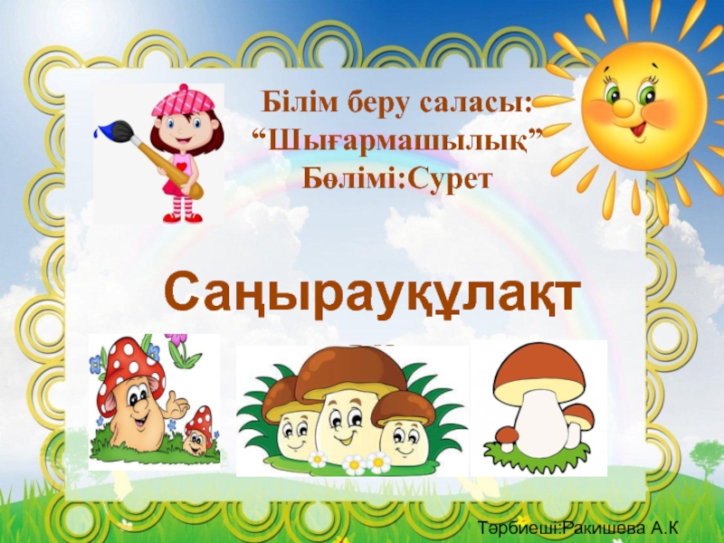 Білім беру саласы: “Шығармашылық”Бөлімі:СуретСаңырауқұлақтарТәрбиеші:Ракишева А.К