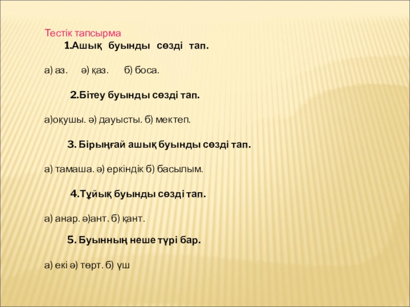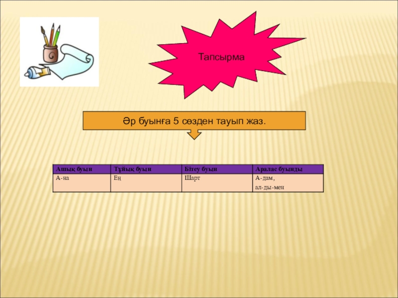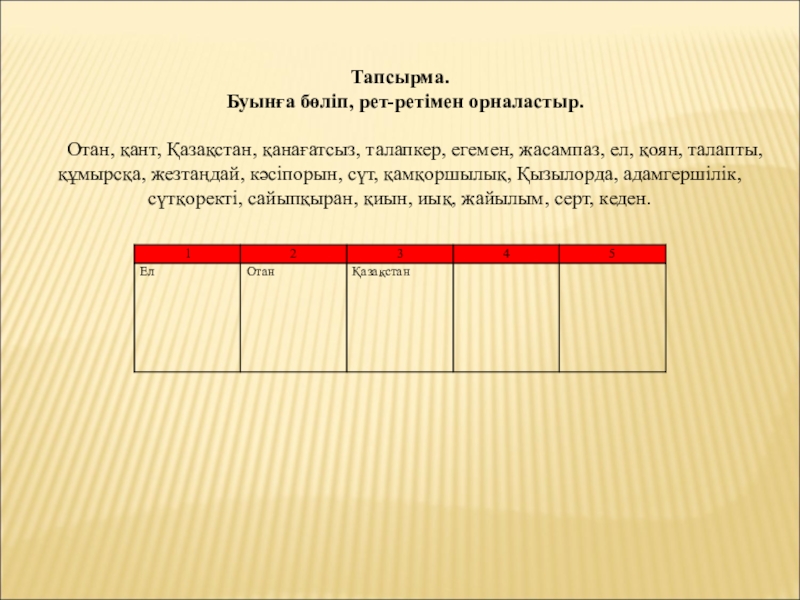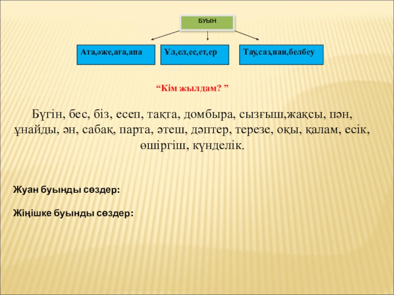 Тапсырма: Екі топқа да. Екінші буынымды тап.