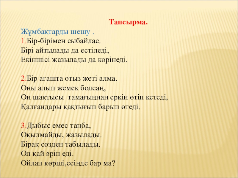 ауызша, жазбаша талдау жұмысын жүргізе отырып білімдерін бекіту.