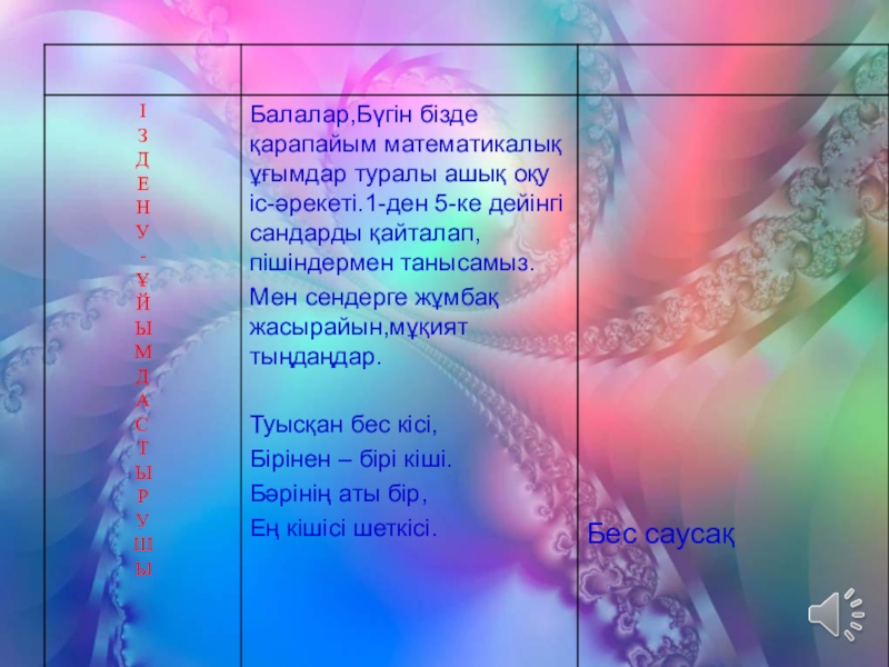 Тәрбиеші: Дүйсенбаева Жанаргүл