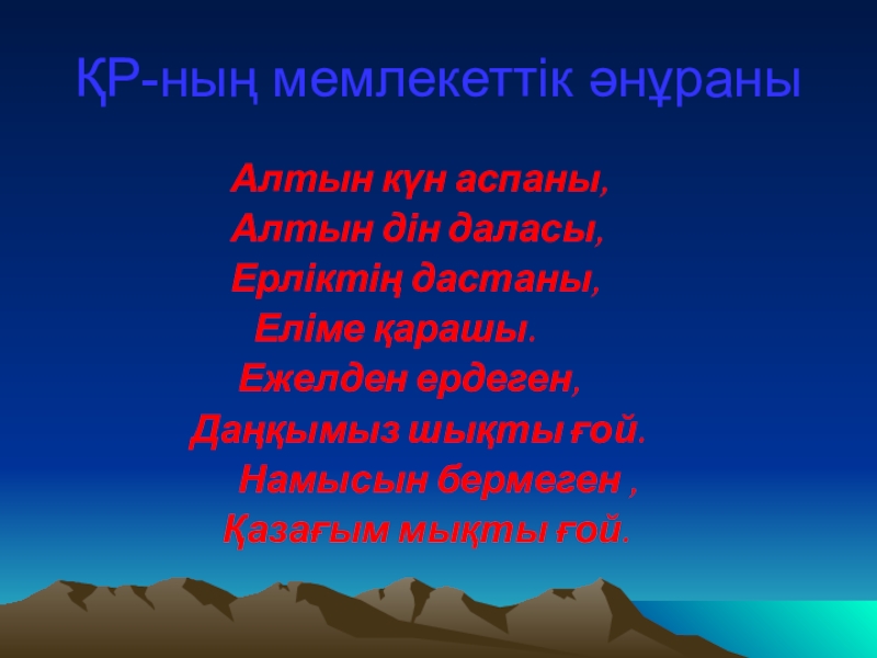 ҚР-ның мемлекеттік әнұраны            Алтын күн аспаны,