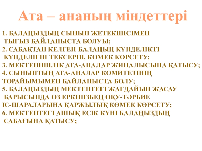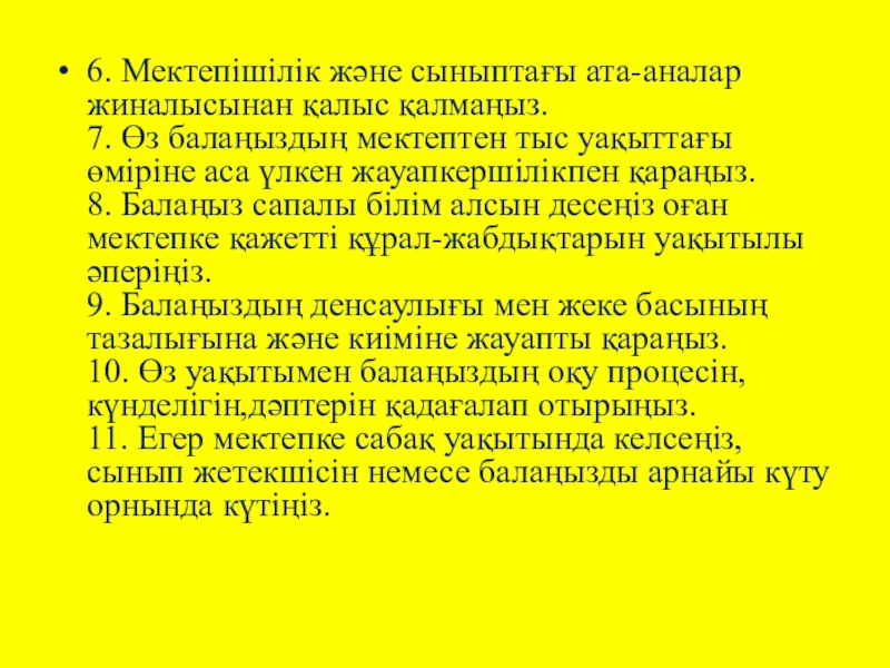 Біз сіздерді мектептегі оқушы өміріне қатысты өтетін іс – шараларға және мектептегі жиналыстарға белсенді түрде қатысуларыңызды шақырамыз!
