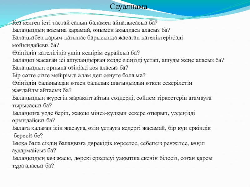 Сіз балаңызды тек түсініп қана қоймай, әрі ойын тануға сыйлы