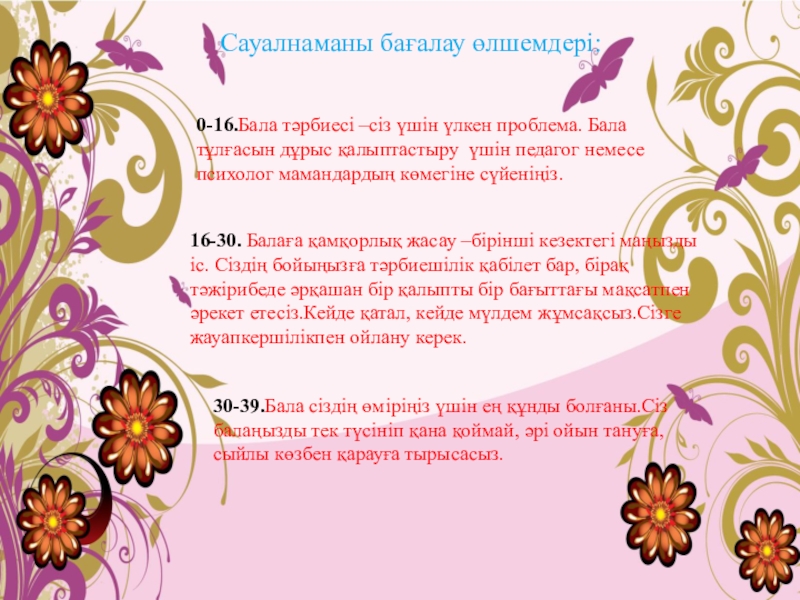 30-39.Бала сіздің өміріңіз үшін ең құнды болғаны.Сіз балаңызды тек түсініп қана қоймай, әрі ойын тануға, сыйлы көзбен қарауға тырысасыз.