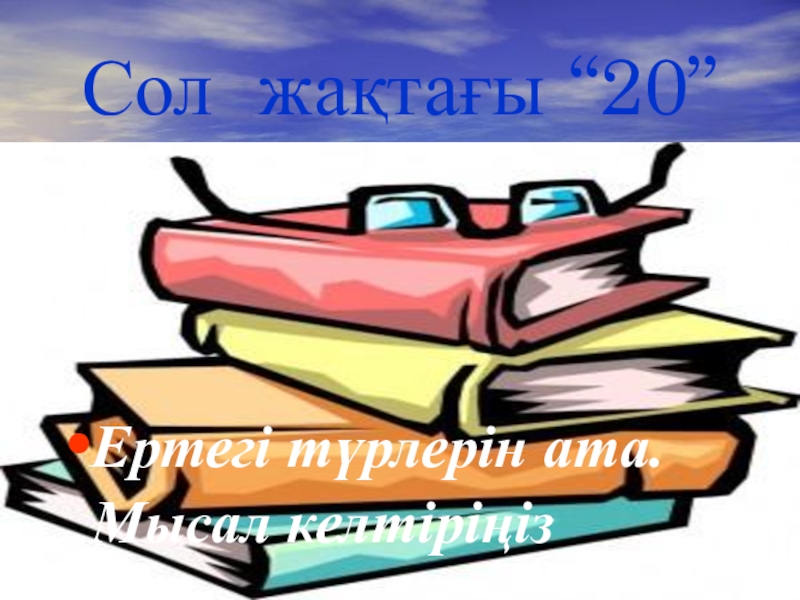 Сол жақтағы “20”Ертегі түрлерін ата. Мысал келтіріңіз