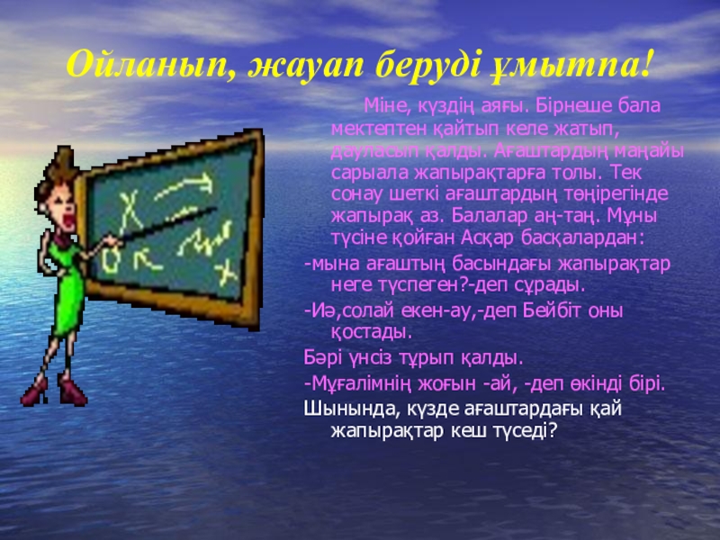 Ойланып, жауап беруді ұмытпа!    Міне, күздің аяғы. Бірнеше бала мектептен қайтып келе жатып, дауласып