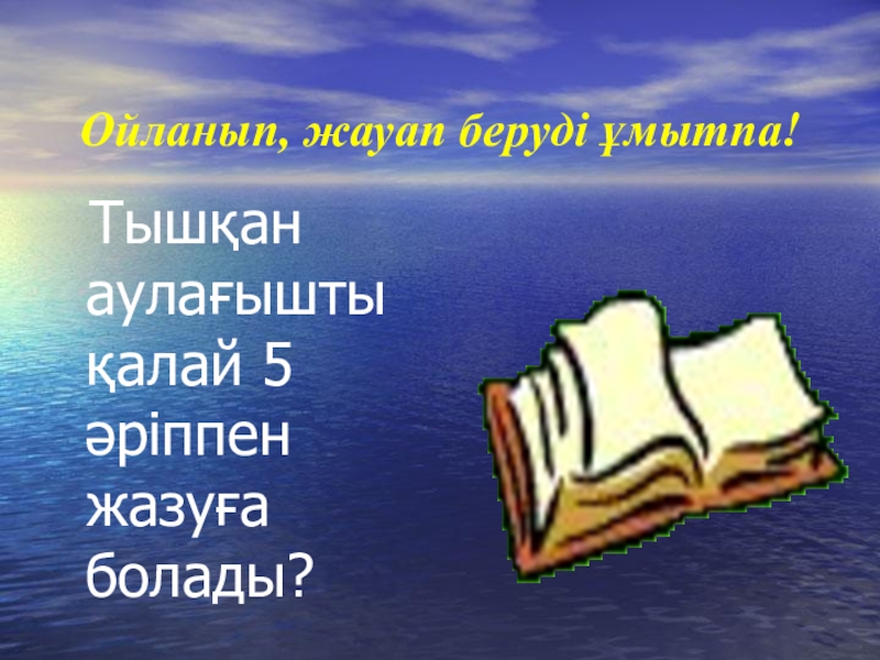 Слайд 26Ойланып, жауап беруді ұмытпа!