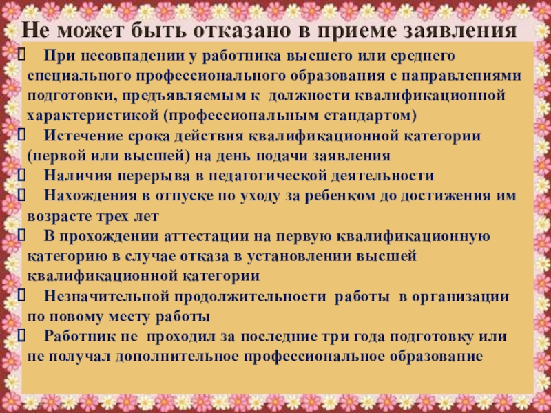 … (указывается должность, по которой педагогическому работнику отказывается в установлении квалификационной категории).