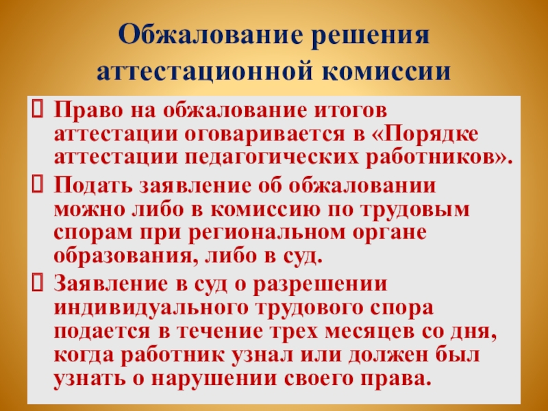 Право на обжалование итогов аттестации оговаривается в «Порядке