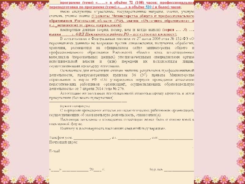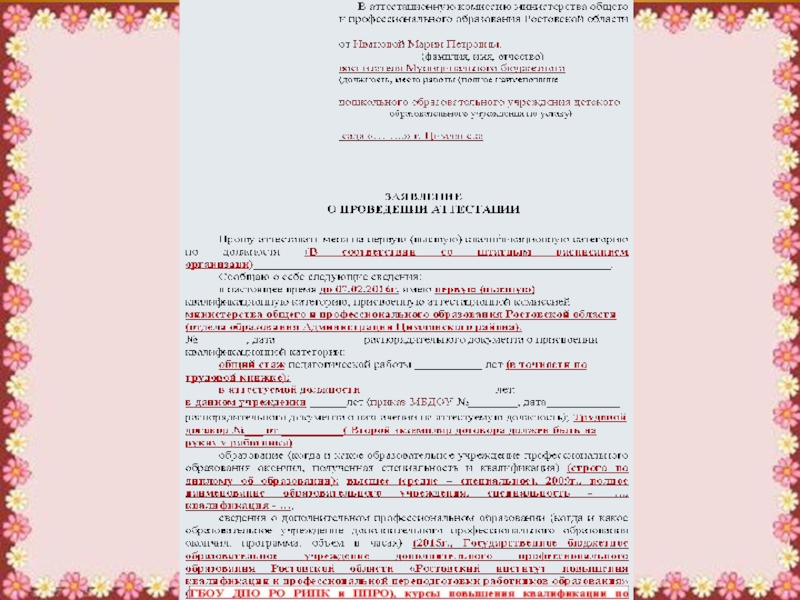 образовательных учреждений подают заявление секретарю аттестационной комиссии в рукописном варианте или печатном виде, написанное на одной стороне листа на формате А 4.