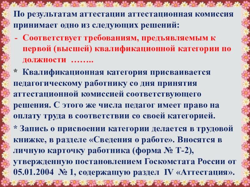 Слайд 26По результатам аттестации аттестационная комиссия принимает одно из следующих решений: