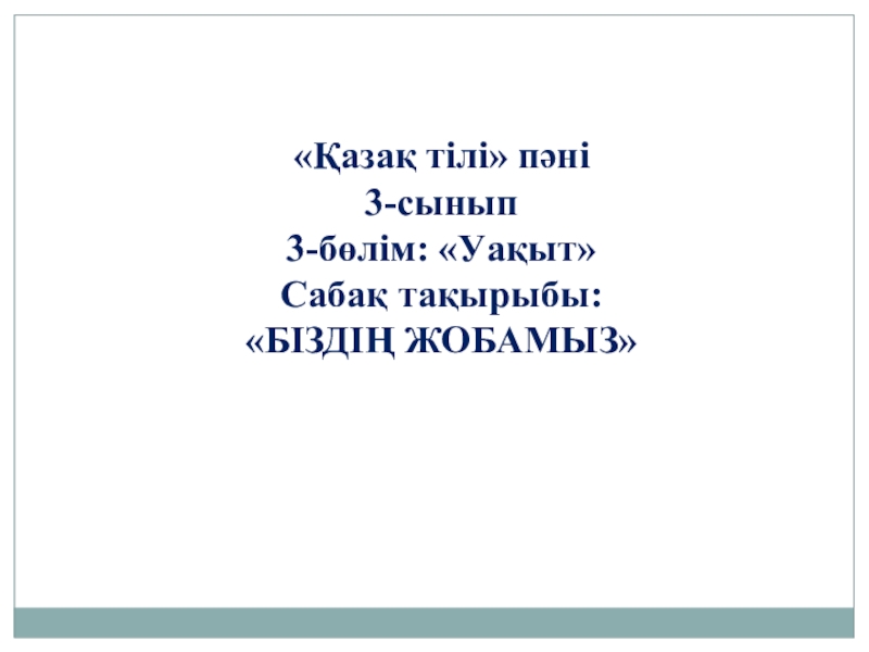 «Қазақ тілі» пәні3-сынып3-бөлім: «Уақыт»Сабақ тақырыбы: «БІЗДІҢ ЖОБАМЫЗ»