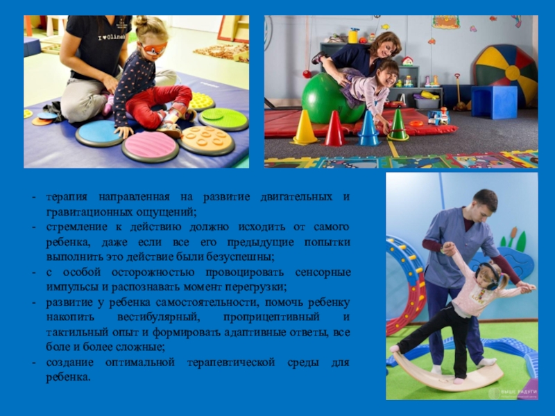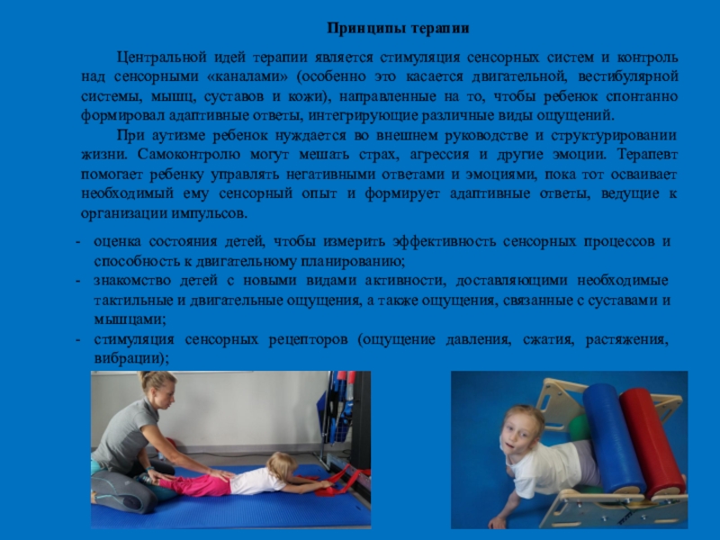 знакомство детей с новыми видами активности, доставляющими необходимые тактильные и двигательные ощущения, а также ощущения, связанные с суставами и мышцами;