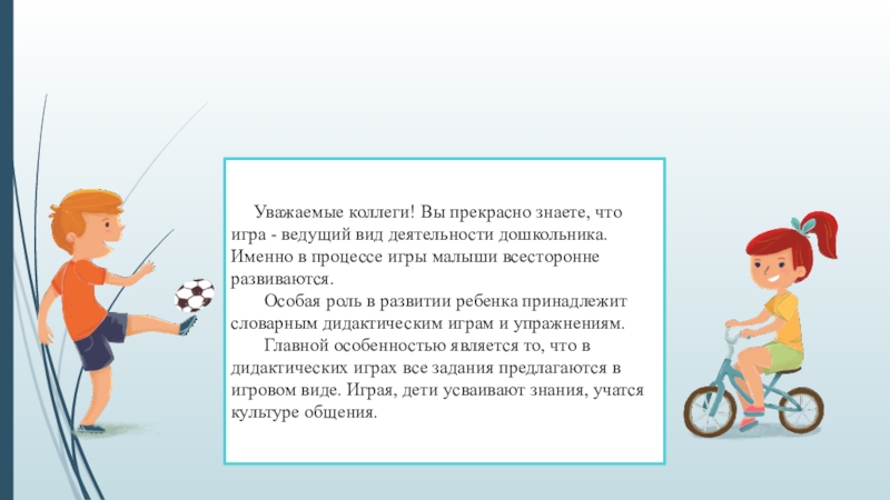 Слайд 2 Уважаемые коллеги! Вы прекрасно знаете, что игра - ведущий вид деятельности