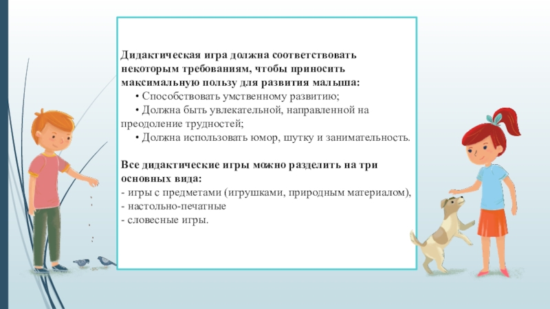 Слайд 5Дидактическая игра должна соответствовать некоторым требованиям, чтобы приносить максимальную пользу для