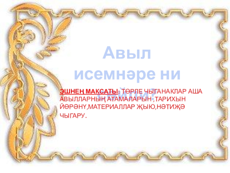 ТӨРЛЕ ЧЫГАНАКЛАР АША АВЫЛЛАРНЫҢ АТАМАЛАРЫН ,ТАРИХЫН ЙӨРӘНҮ,МАТЕРИАЛЛАР ҖЫЮ,НӘТИҖӘ ЧЫГАРУ.