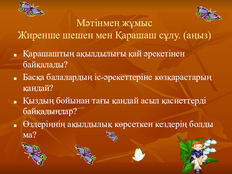 Слайд 4Мәтінмен жұмыс