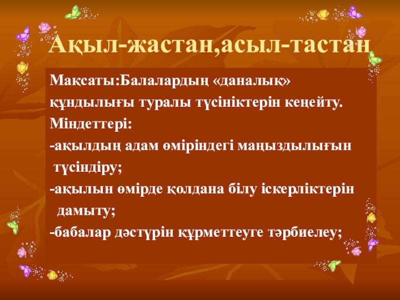 Слайд 1Ақыл-жастан,асыл-тастан