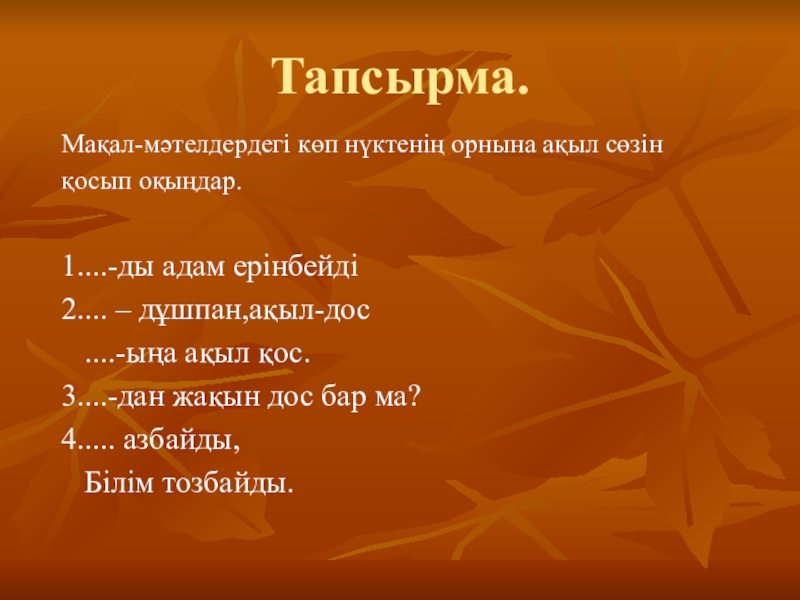 Мақал-мәтелдердегі көп нүктенің орнына ақыл сөзін