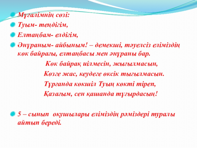 Слайд 15Мұғалімнің сөзі: