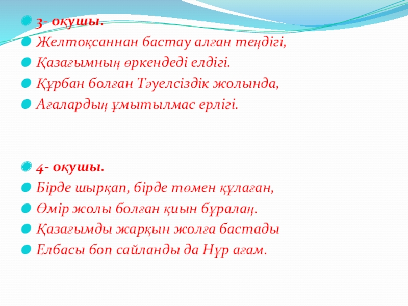 Слайд 21 Мұғалімнің сөзі:
