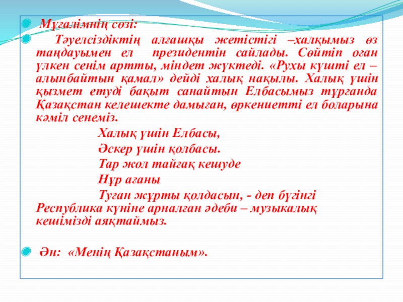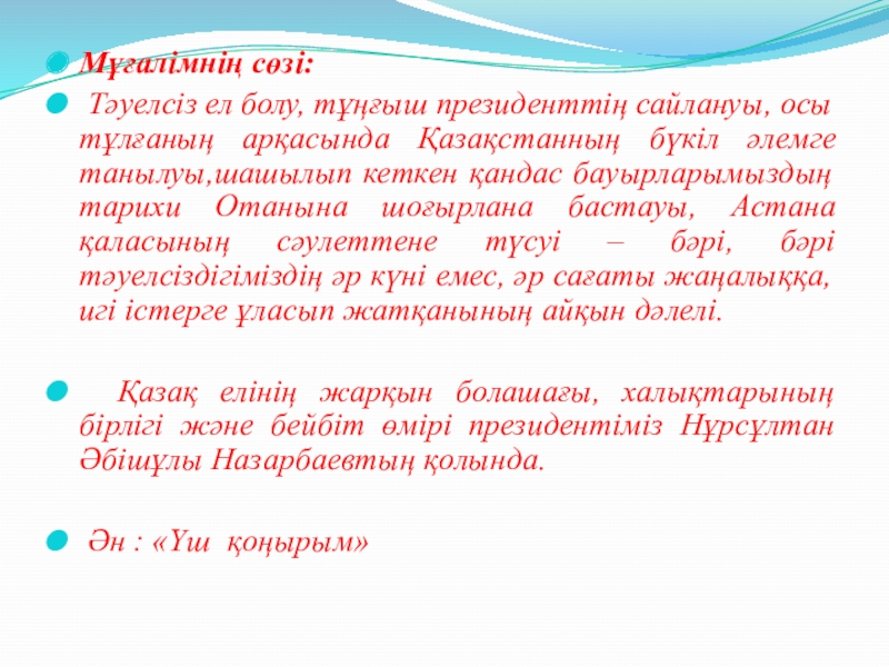 Слайд 19Мұғалімнің сөзі: