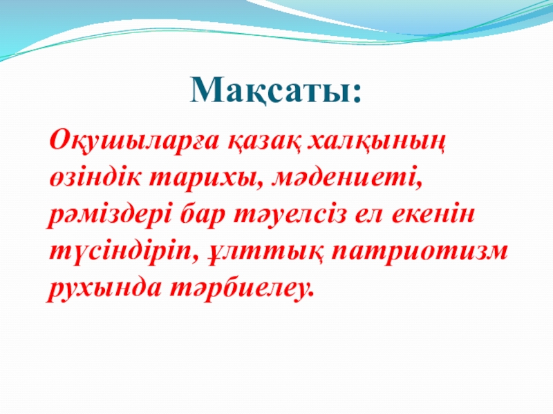 екенін түсіндіріп, ұлттық патриотизм рухында тәрбиелеу.