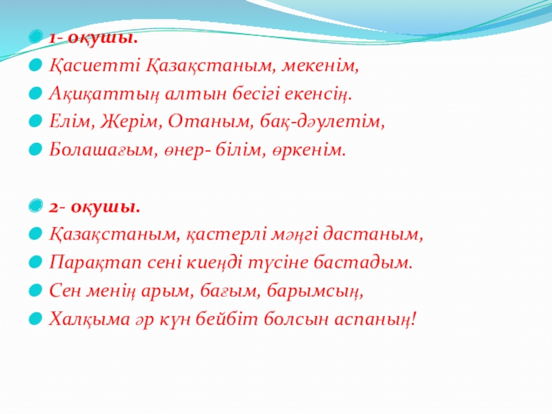 Ән: «Менің Қазақстаным».