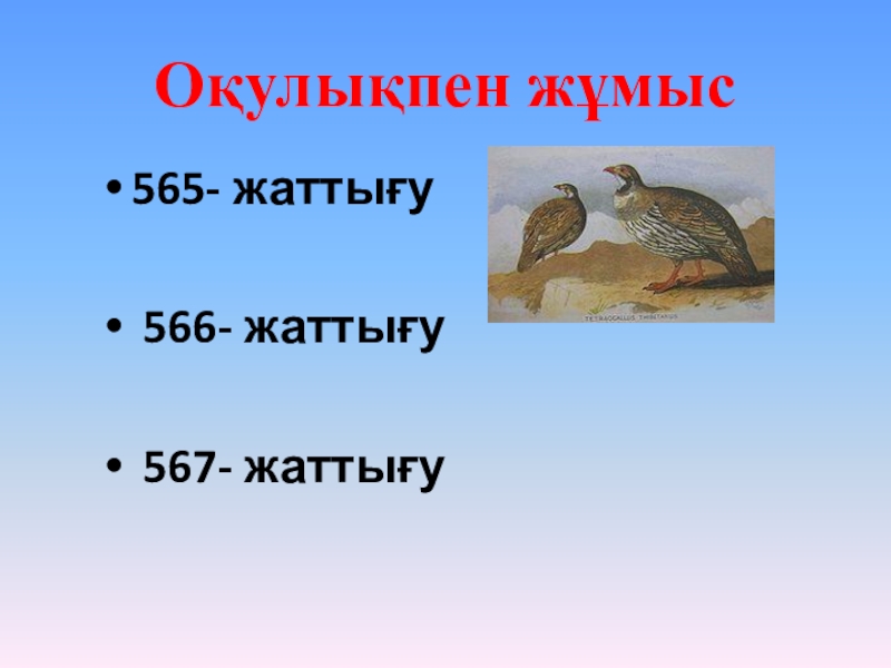 Оқулықпен жұмыс565- жаттығу 566- жаттығу 567- жаттығу