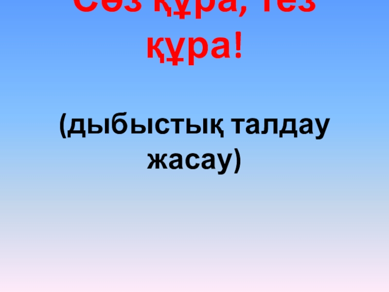 Слайд 4 Сөз құра, тез құра! (дыбыстық талдау жасау)