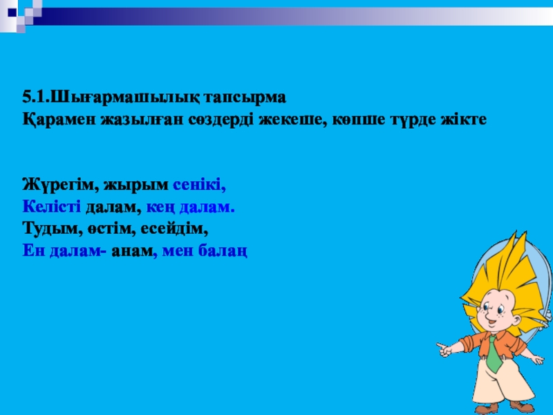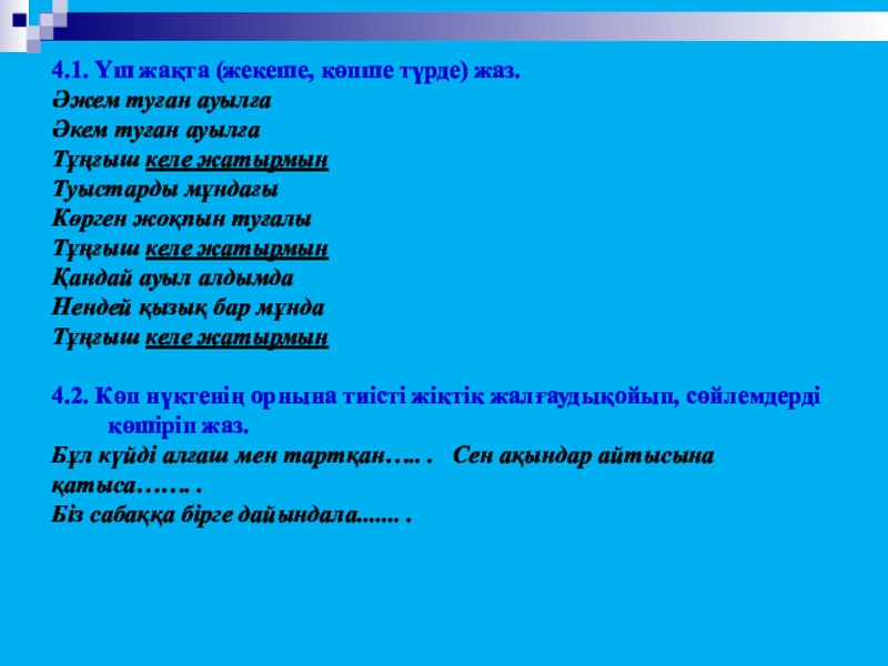 Қарамен жазылған сөздерді жекеше, көпше түрде жікте