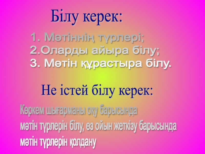 мәтін түрлерін білу, өз ойын жеткізу барысында