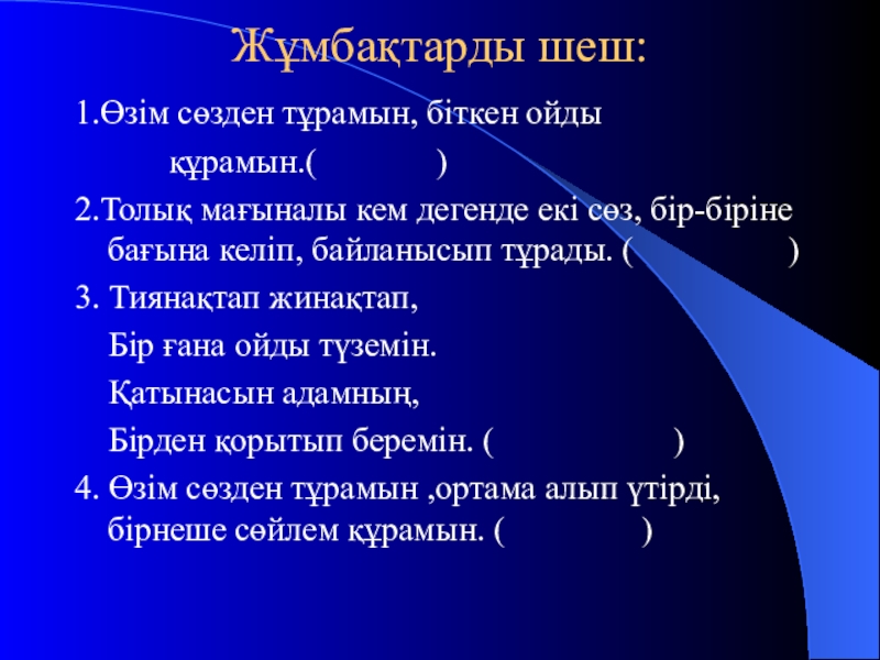 4. Өзім сөзден тұрамын ,ортама алып үтірді,бірнеше сөйлем құрамын. ( )