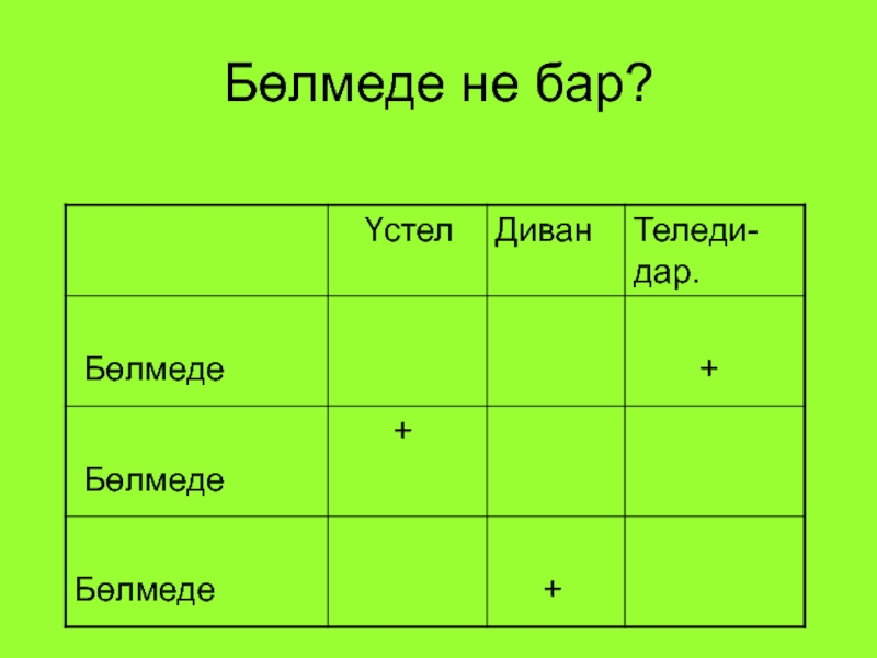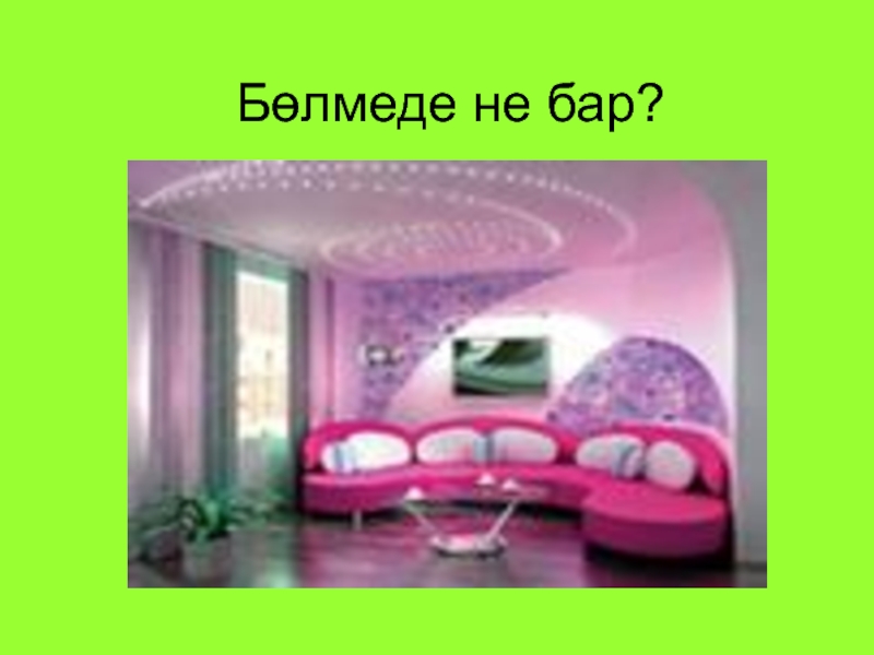 Слайд 1Бөлмеде не бар?